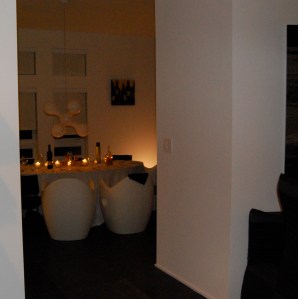 Last night we held a small screening here, at our candy-land-bachelor-pad, of the movie that Roland, dear friend and godfather to all our kids, has made. This film follows three of his Bronx high school students over several years in their attempt to escape the ghetto through writing poetry. The movie is a powerful and touching piece of work, which will be shown by PBS sometime next year. As all twenty of us sat quietly and watched and listened to loud, intense rapping and slamming, another, even louder noise, seeped in through the open windows. Alastair and I looked at each other. WTF? A street fight? On our ultra secure Aqua island? A spousal argument? The new neighbors?