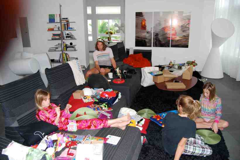 Family, they fuck you up, they say, but I dont want to  have the kind of family that fucks anyone up. I take this mission seriously. Especially over Christmas. So what happens? I fuck mysef up. I twist myself into a pretzel of perfection. I will have the best food, the best decorations, the best gifts, the best dressed kids, the heirloom decorated tree, the funnest boxing day party, you get my drift. You probably drift in that same direction yourself. Nothing new here you are thinking. Well, this year with our change of scenery, palmtrees instead of evergreens, weather : sun @80 degrees instead of ice and snow @15 degrees, the impersonal designer bachelor candyland pad as our new home rather than my 200 year old farmhouse with beams and fireplaces, I thought it would be different. I went into denial, no, I actually believed that if I closed my eyes and wore a swimsuit Christmas would pass me by.