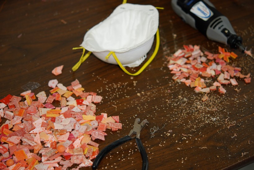 But this year is different. I’m working manual labor in Miami. I have to produce 900 tee shirts for Barneys New York, using organic blanks from Loomstate. And 900 tees is about 35,000 pieces of  beach plastic, and about 50,000 drilled holes! Its a group of women beaders who need 50 kits every week between now and end january, and I’ll have to provide those. I’ll be working hard and I love it.