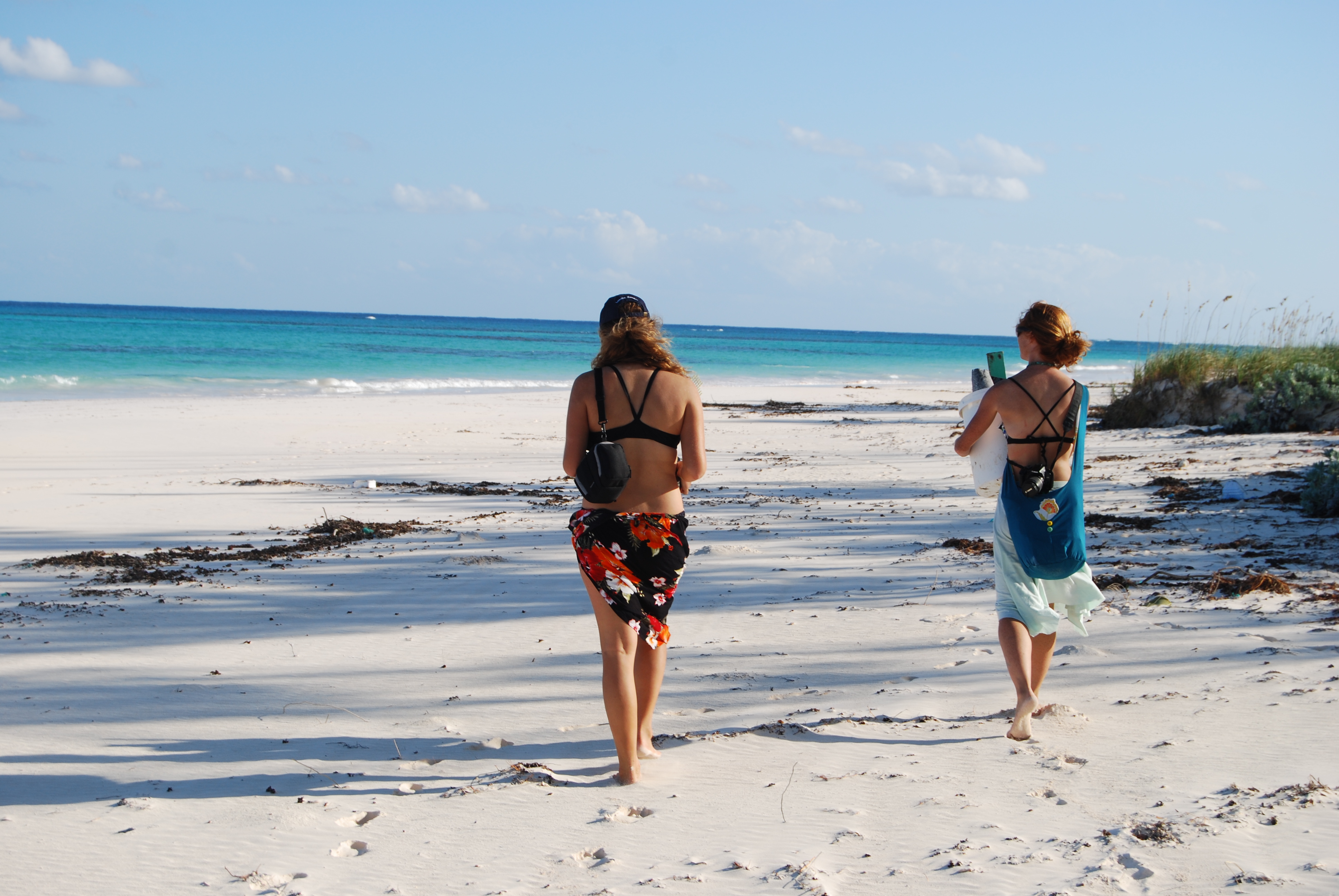 We started the day with a beach sweep at the Cotton Bay Club (Juan Tripp’s Eleuthera dream of more than half a century ago.) Its ruins hide just beyond the dune amongst the Casuarinas, gaping and crumbling fifties bungelows some with indestructible nylon drapes ghostly in the wind. Here we collected beach plastic that had been swept into the dune grass and beyond by hurricane Irene last August. Stories of the eye passing over the island twice still fresh on everybody’s lips.