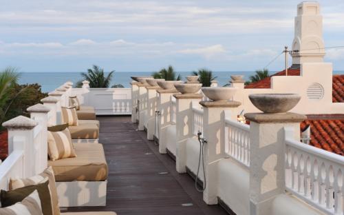 While a boxing ring the size of a cereal box was being lowered from 11th Street into the infamous swimming pool courtyard by a 100 ft crane (for a 3 round boxing match between a supermodel-by-day/boxer-by-night and an I’ll-fuck-your-face-up-bad boxer, which the spoiled crowd watched with as much fervor as if they were watching Jo Biden eating oatmeal) we wandered into the Villa’s inner courtyard and climbed the stairs all the way to the roof, to Gianni’s lair inside the watchtower strewn with pillows and overlooking Ocean Drive, the beach and the Atlantic Ocean. When Alastair trespassed further he was confronted by what may have been a ghost of nineties security, a Men-in-Black guard with the charm of Scarface.